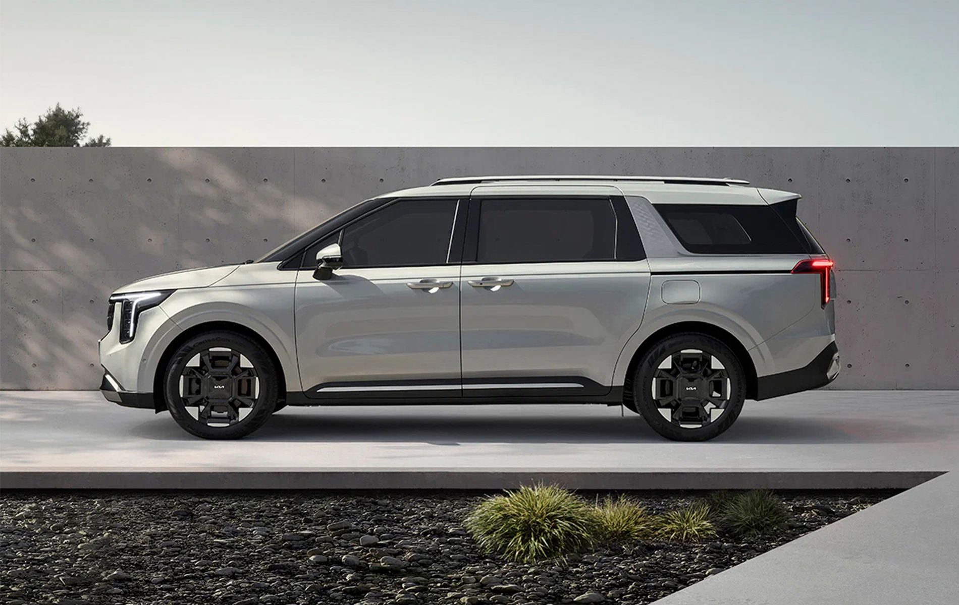 Kia Carnival сохраняет узнаваемый стиль бренда, предлагая выразительную комбинацию массивных пропорций и современных дизайнерских решений. Экстерьер выполнен в формате крупного городского минивена, где каждый элемент направлен на практичность и визуальную солидность.